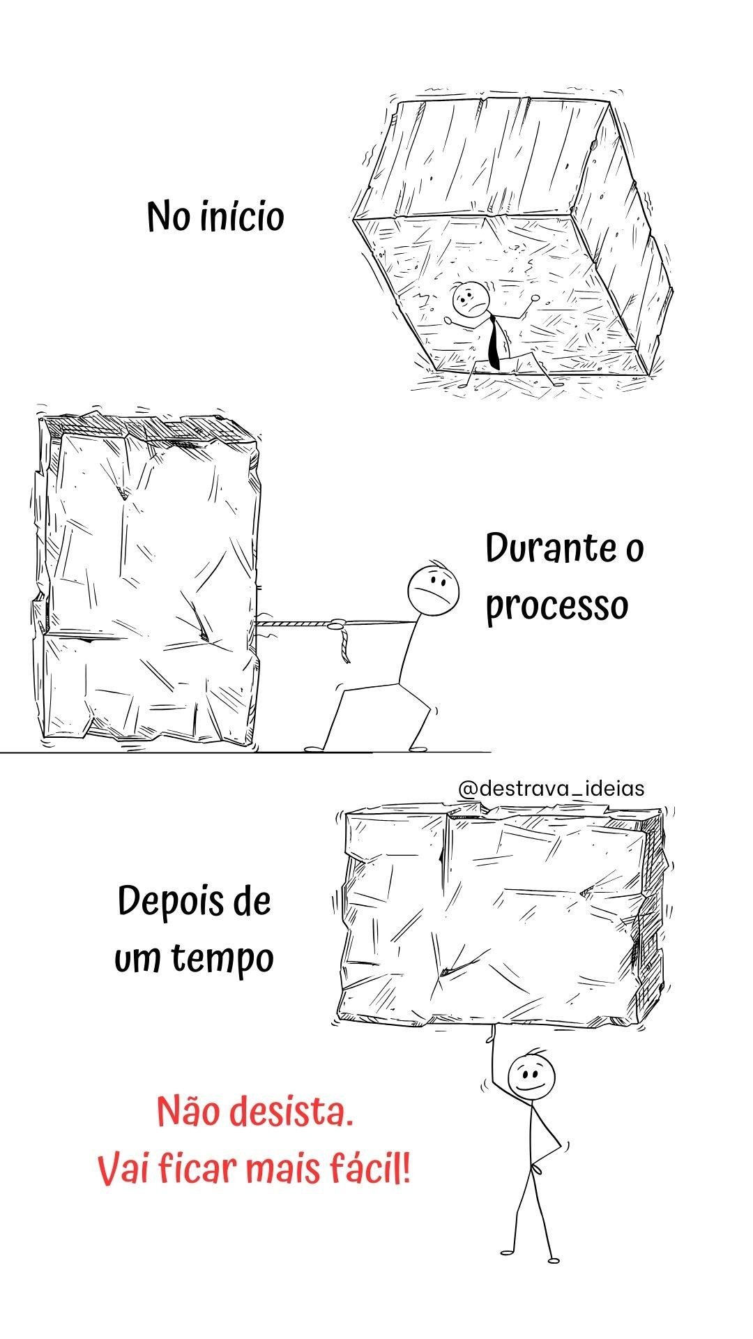 No início. Durante o processo. Depois de um tempo. Não desista. Vai ficar mais fácil! – @amufrases
